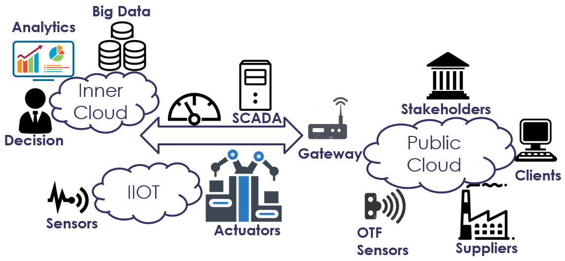 In Industrial Internet of Things (IIoT), as opposed to the more generic IoT context, the things (devices, but also supervisors) are rarely directly connected to open networks such as Internet. Breach of software integrity of devices involved in such systems could lead to catastrophic results [stuxnet], [blackenergy]. They are generally connected to the public network through gateways. This topology is illustrated in the Figure 1.