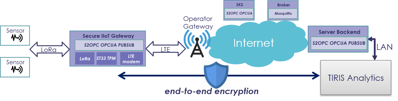 As such, end-to-end encryption is an important need for IIoT. Only the final receiver of a message should be able to access to its clear text data. It encompasses the capability to cross networks through as many gateways as needed, while the data keeps its confidentiality and integrity, both being guaranteed by cryptographic means. This latter feature is important, as devices in IIoT are usually embedded into multiple layers of subnetworks.