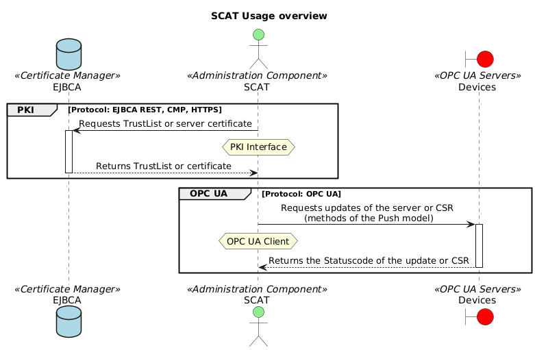 L’interface OPC UA du GDS Push Server s’appuie sur le principe du « Push Management » standardisé dans la part 12 du standard OPC UA (voir https://reference.opcfoundation.org/GDS/v105/docs/7.4).