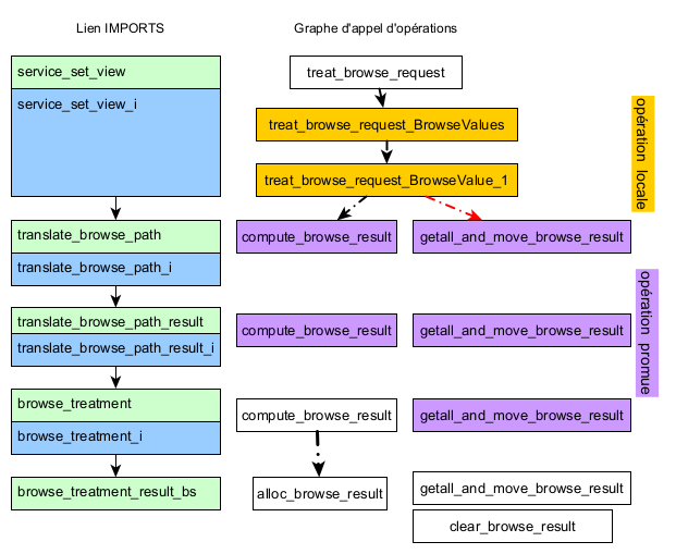 Note : Dans le graphe d’appel d’opérations, il n’y a pas de flèche reliant une opération promue avec son origine qui se trouve au niveau inférieur du lien IMPORTS : du point de vue de code généré, ces opérations sont identiques. Par exemple, pour l’opération compute_browse_result qui est promue du module browse_treatment au module translate_browse_path_result, le code généré est le suivant :